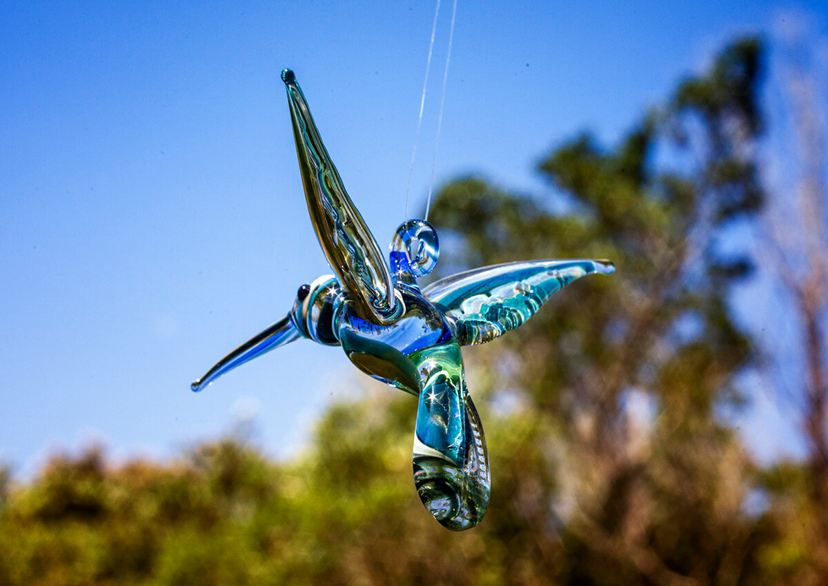 Cloud forest glass hummingbird to decorate your house. Avaliable colors: Blue, Red, Green Width:
